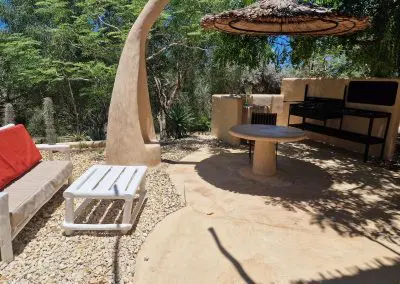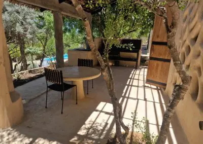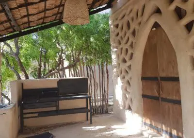 – d’un petit coin kitchenette (pas conçues pour y manger, mais pour y boire un café ou un thé), mais à l’extérieur, nous avons un barbecue avec lequel il est possible de faire à manger
