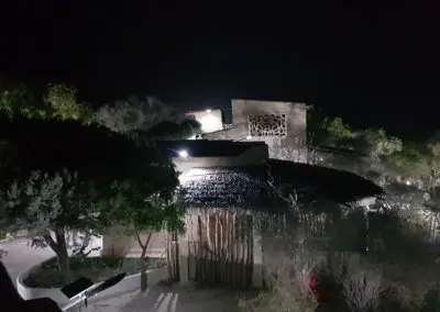 est composée de 3 chambres de 25 m² et 4 bungalows de 45 à 150 m² constituées :