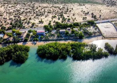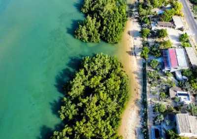 La propriété est accessible par la route nationale et donne sur un bras de mer entourée de mangrove à côté d’une petite plage où il est agréable, compte tenu de la tranquillité, de s’y baigner.
